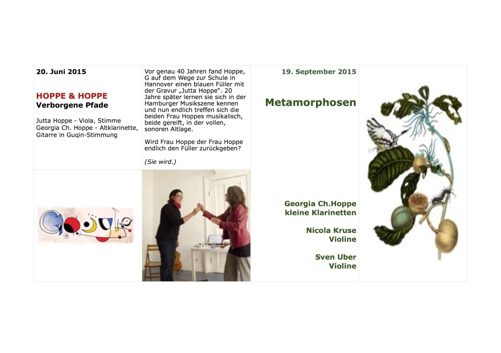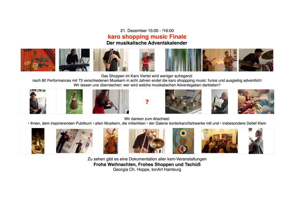 Diese überaus erfolgreiche, kommunikative und ungewöhnliche Konzertreihe fand am 21. 12. 2019 ihren Abschluß. Und weil es so schön war, hat die Initiatorin Georgia Ch. Hoppe eine lockere Dokumentation erstellt :